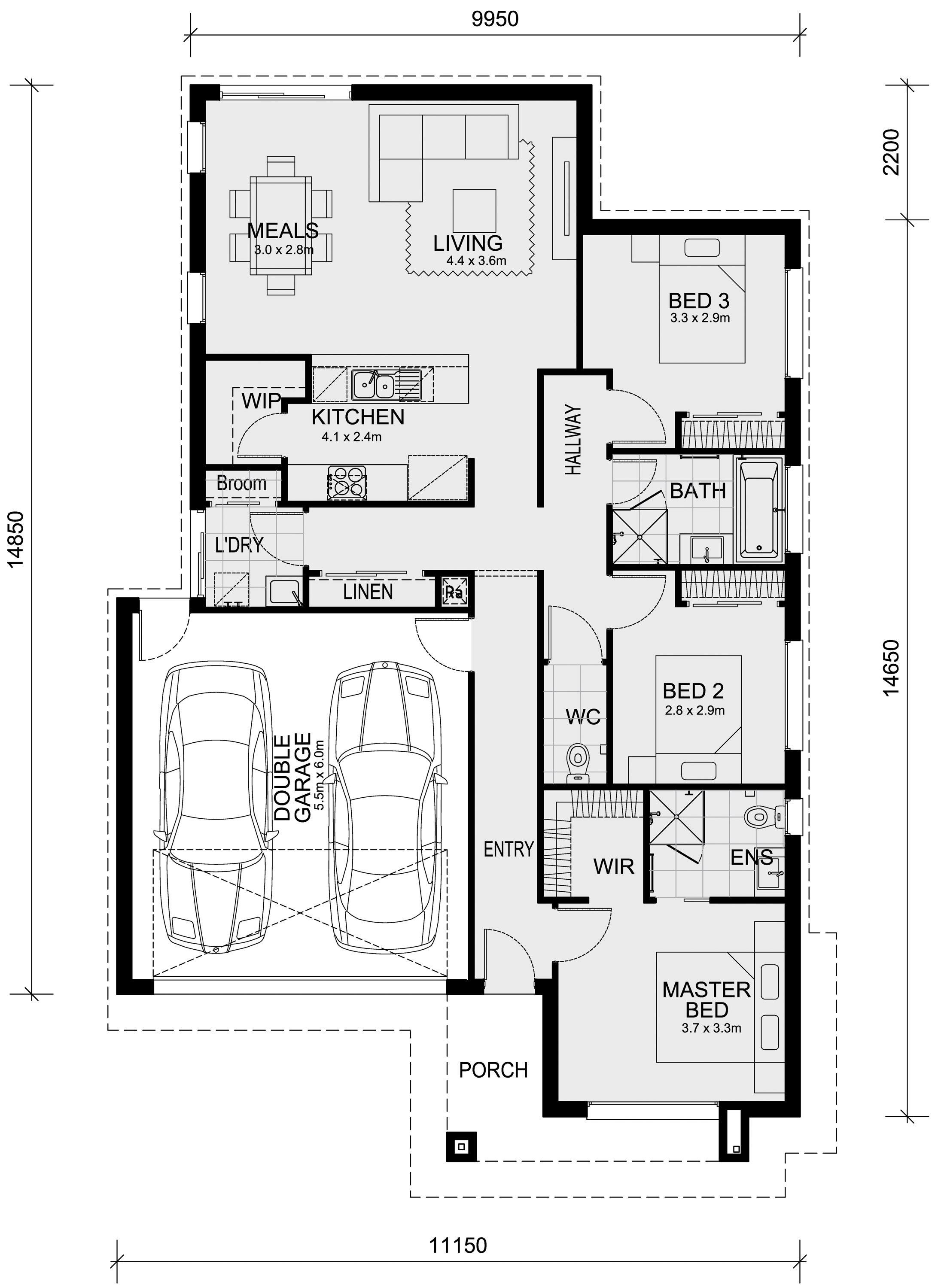 All plans and facades are indicative only and may change. Mimosa Homes may amend plans, specifications, and prices without notice. Package prices are based on a standard facade, standard inclusions, and suitable land availability, excluding developer/estate requirements. Facade and inclusion images may show non standard items not included in the price. Dimensions are approximate. Landscaping, fencing, decking, planter boxes, driveways, and paths are excluded unless specified.