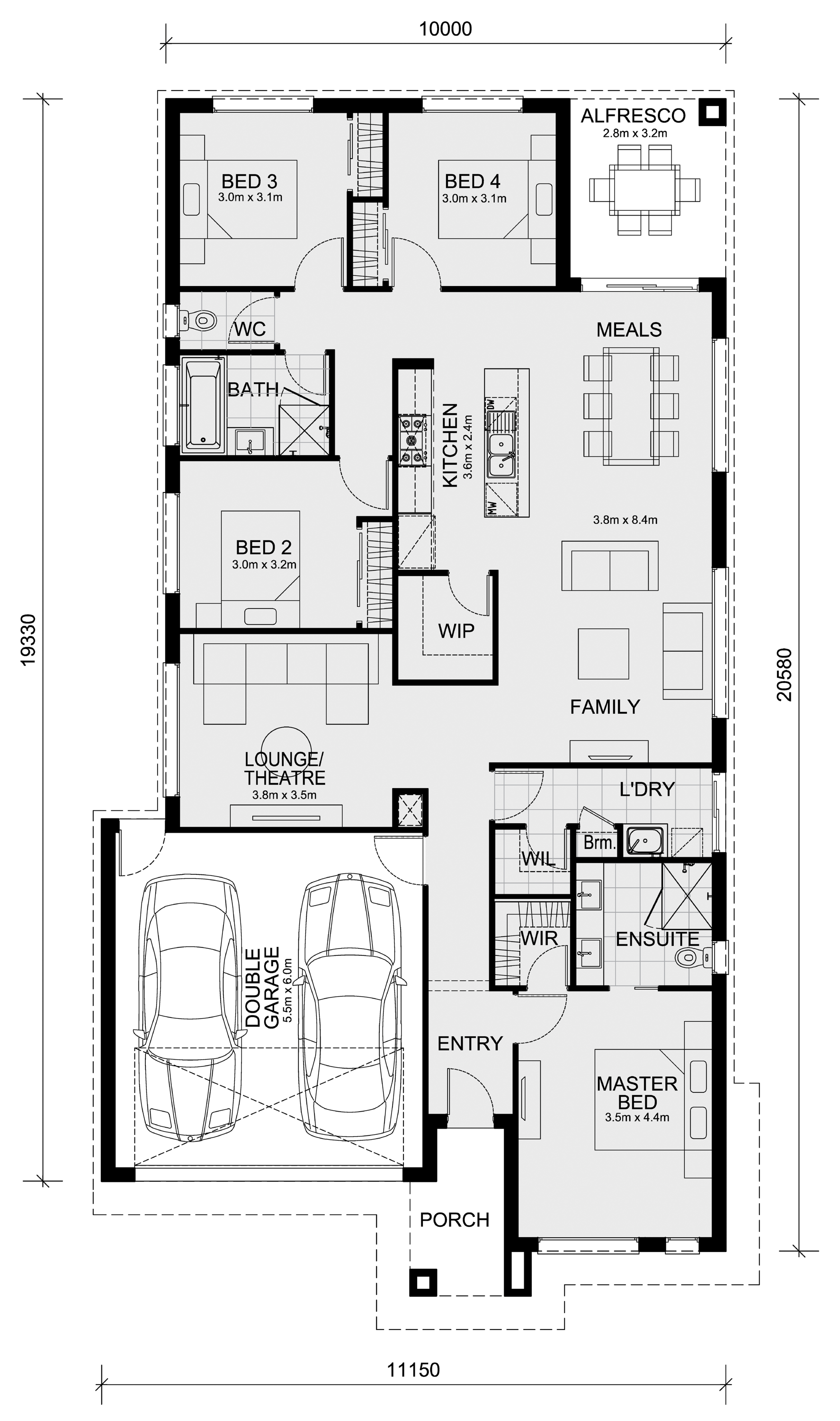 All plans and facades are indicative only and may change. Mimosa Homes may amend plans, specifications, and prices without notice. Package prices are based on a standard facade, standard inclusions, and suitable land availability, excluding developer/estate requirements. Facade and inclusion images may show non standard items not included in the price. Dimensions are approximate. Landscaping, fencing, decking, planter boxes, driveways, and paths are excluded unless specified.